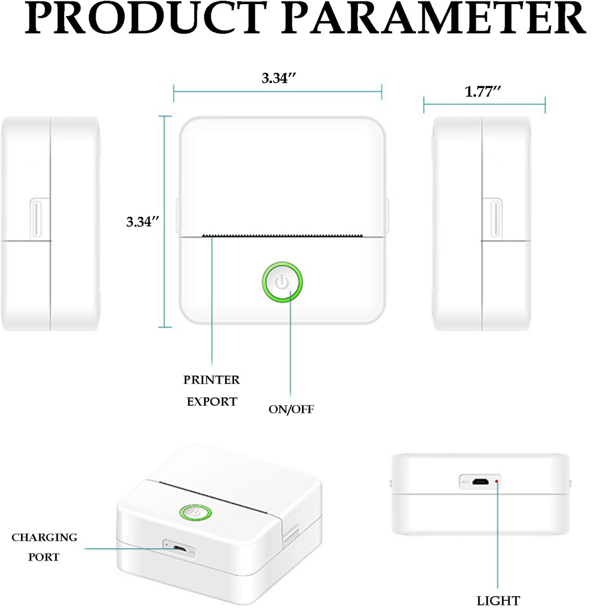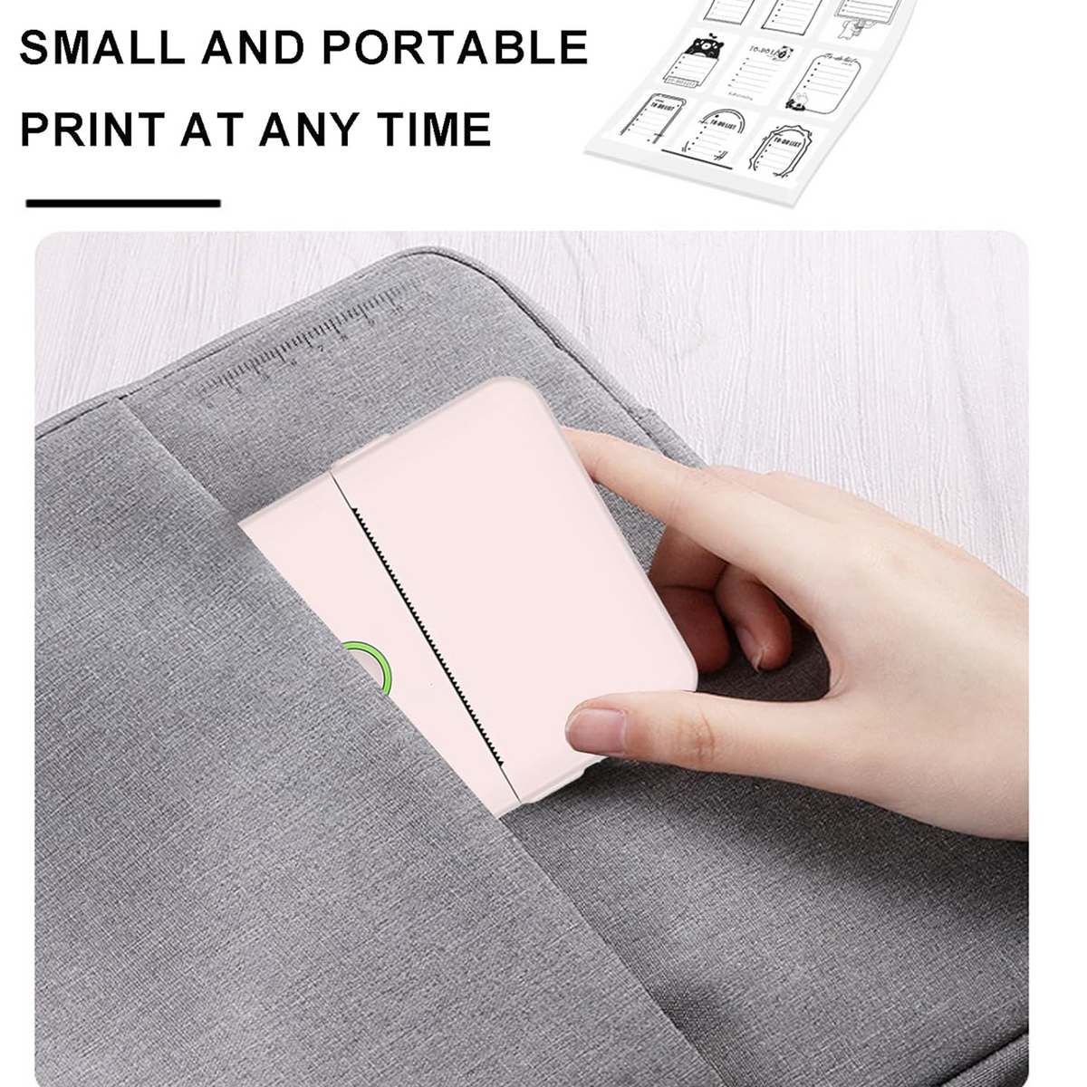 The mini printer is a compact and portable inkless printer, measuring just 3.4*3.4*1.8 inches. Its small size makes it easy to carry and convenient for on-the-go printing. With our innovative inkless printing technology, you no longer need to worry about running out of ink or smudging your notes. The mini printer delivers clean and crisp prints every time, without the need for messy ink cartridges.